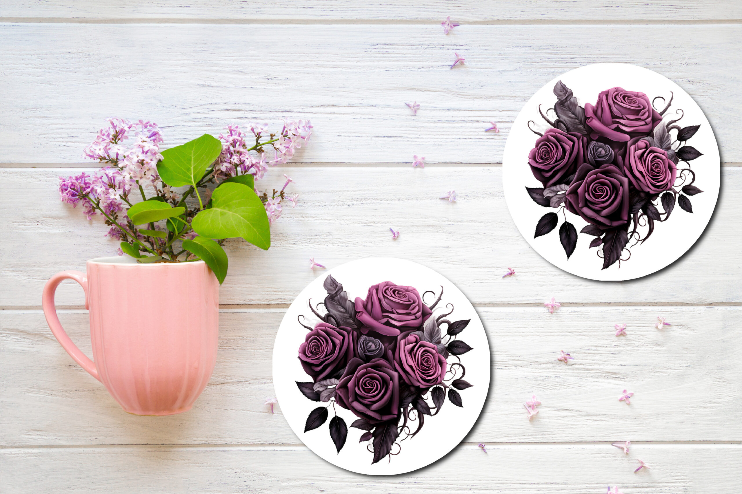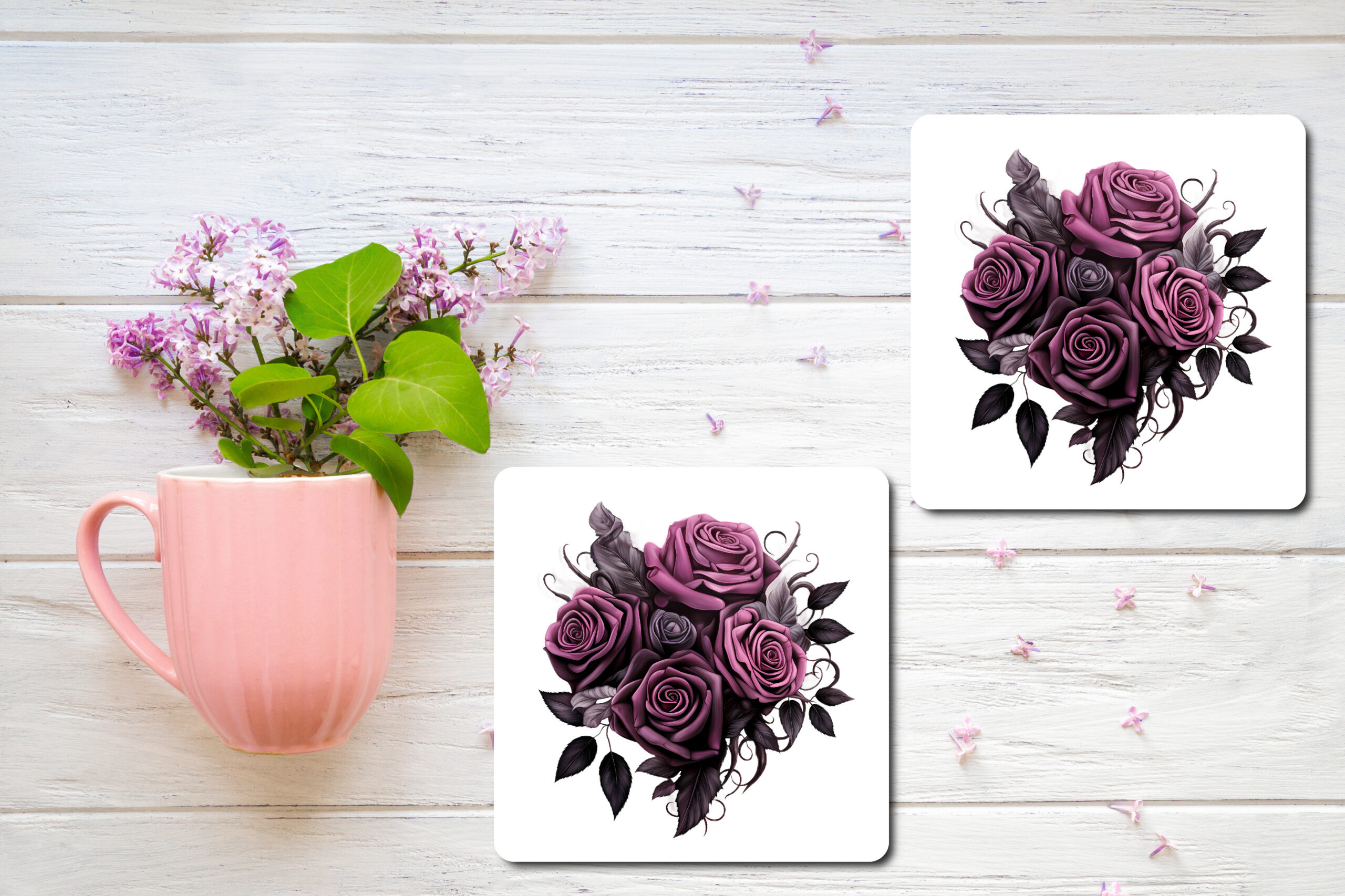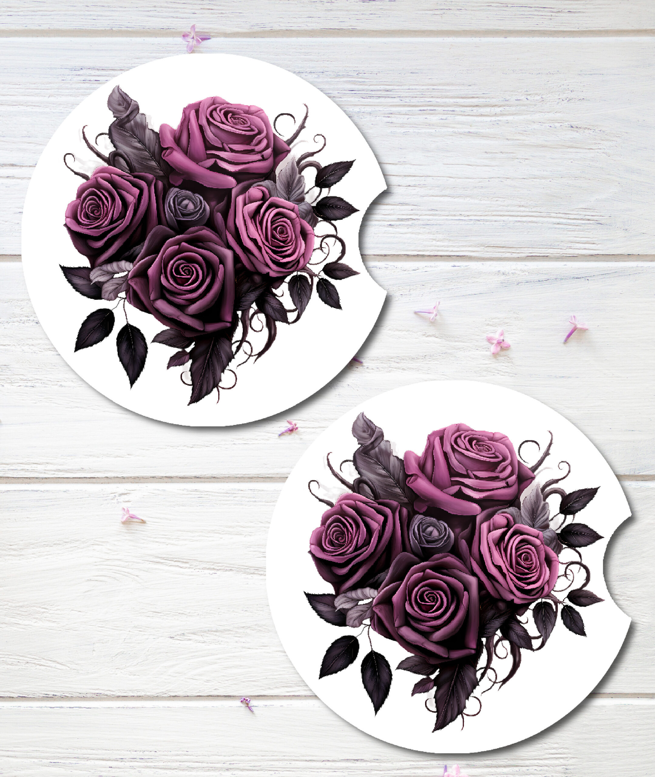 A bouquet of dark roses printed on a set of coasters is a wonderful gift idea for a very close and personal friend or partner. Enjoy them for years.