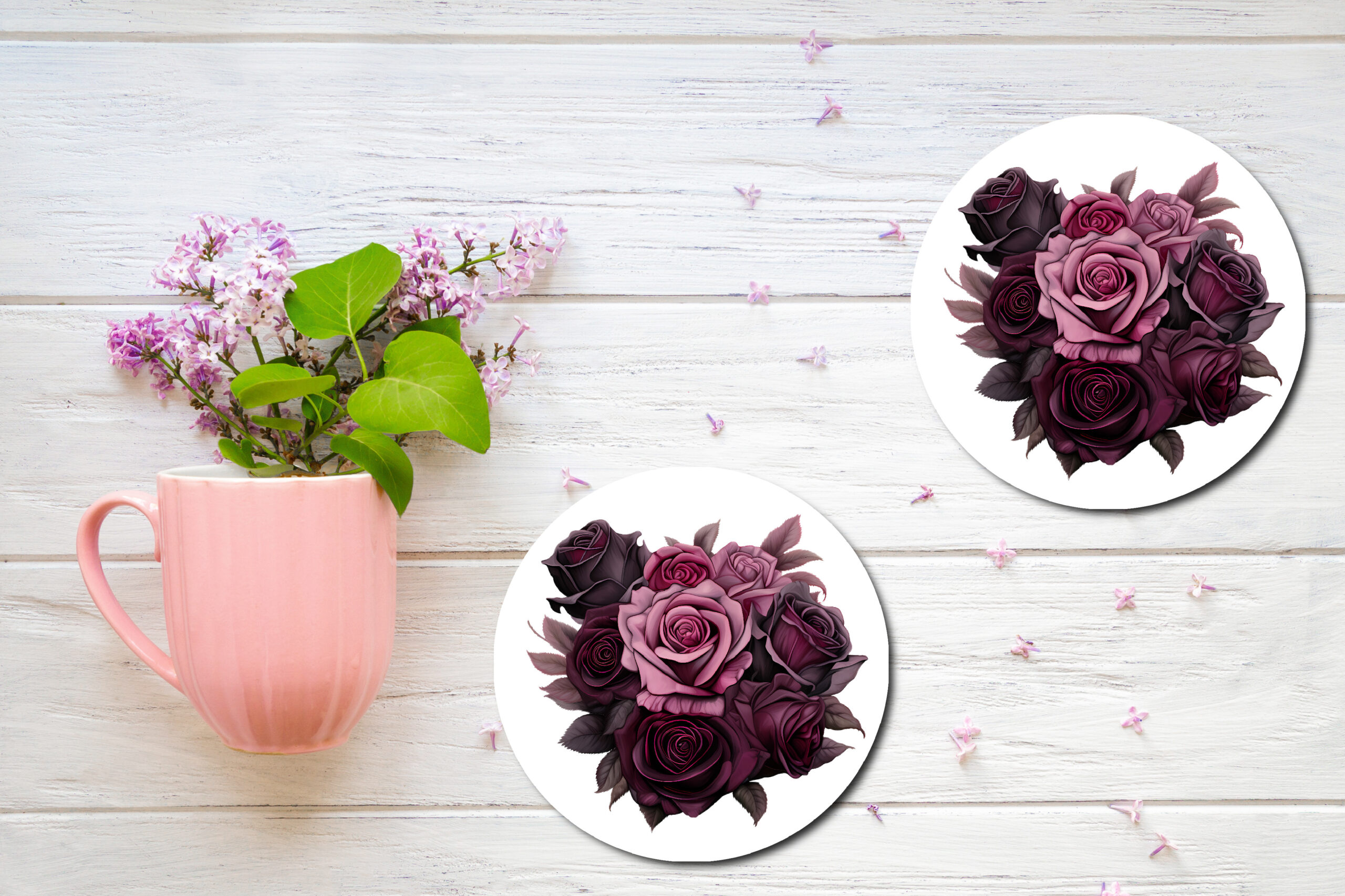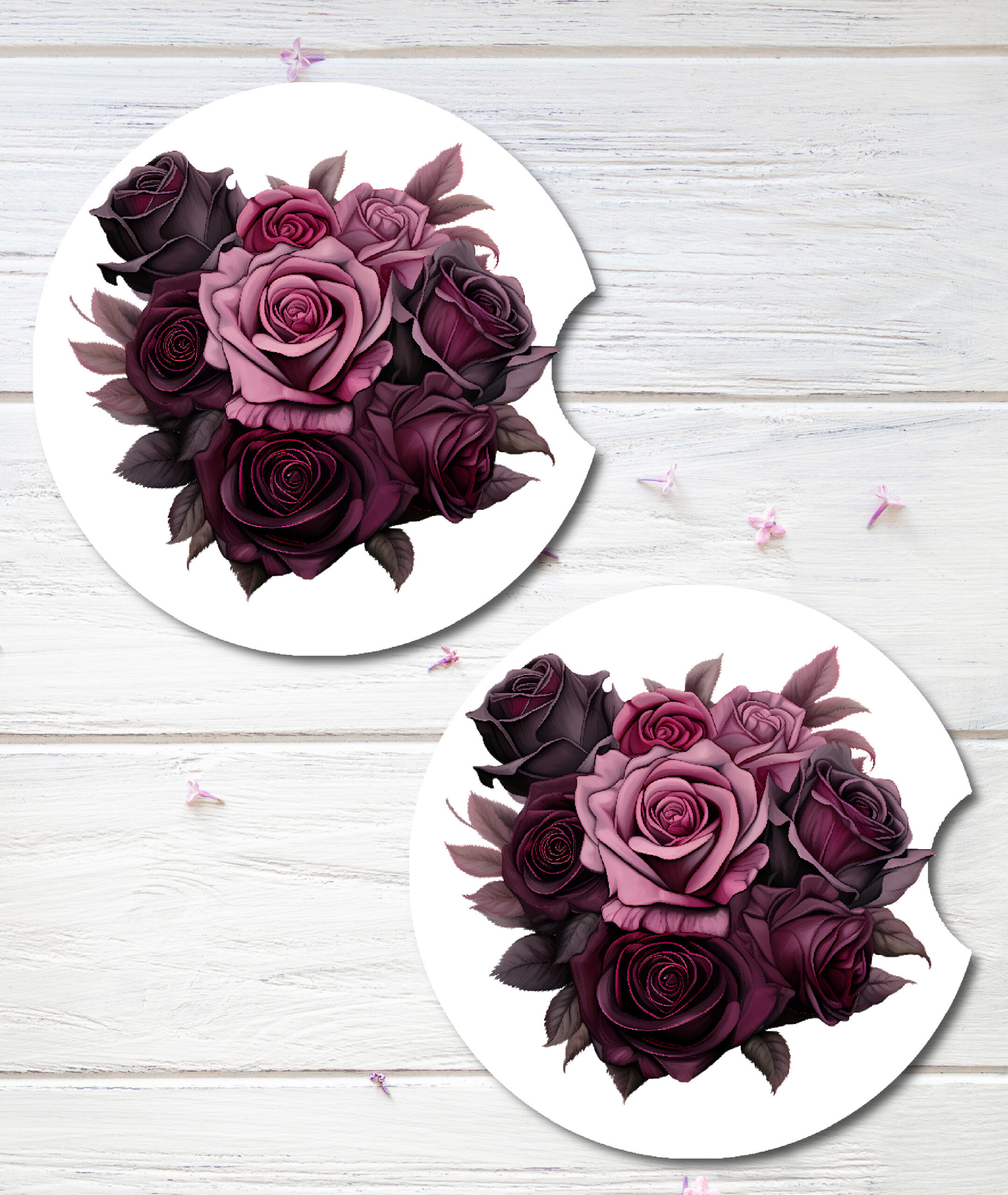 A bouquet of dark roses printed on a set of coasters is a wonderful gift idea for a very close and personal friend or partner. Enjoy them for years.