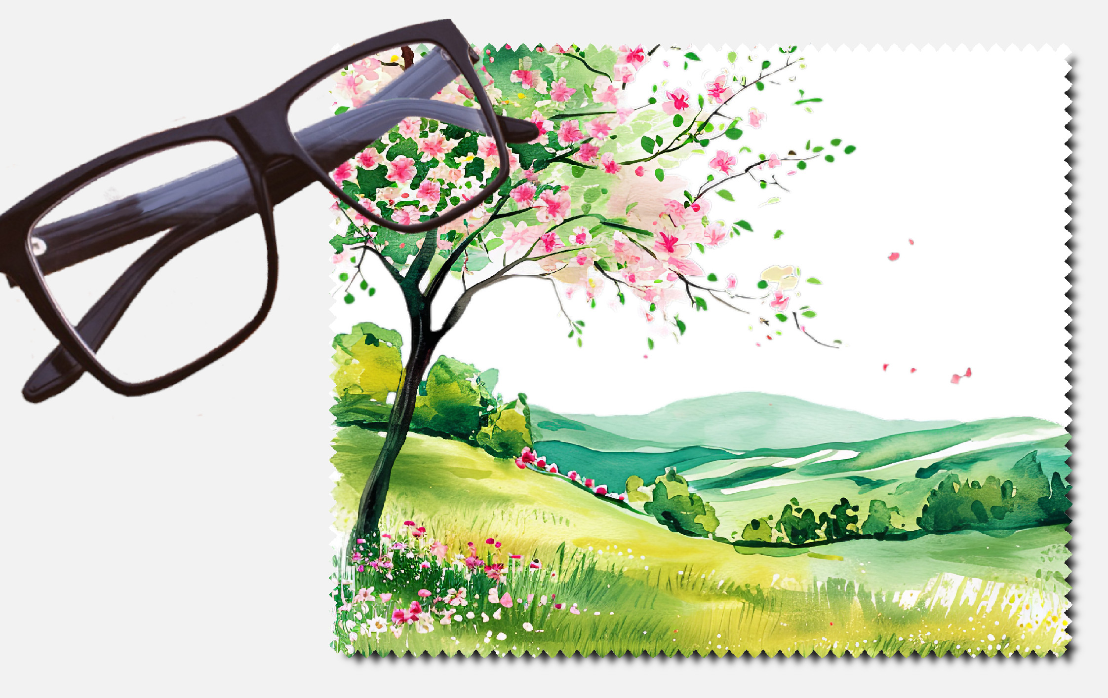 Landscape with treesand flowers lens cleaning cloth
